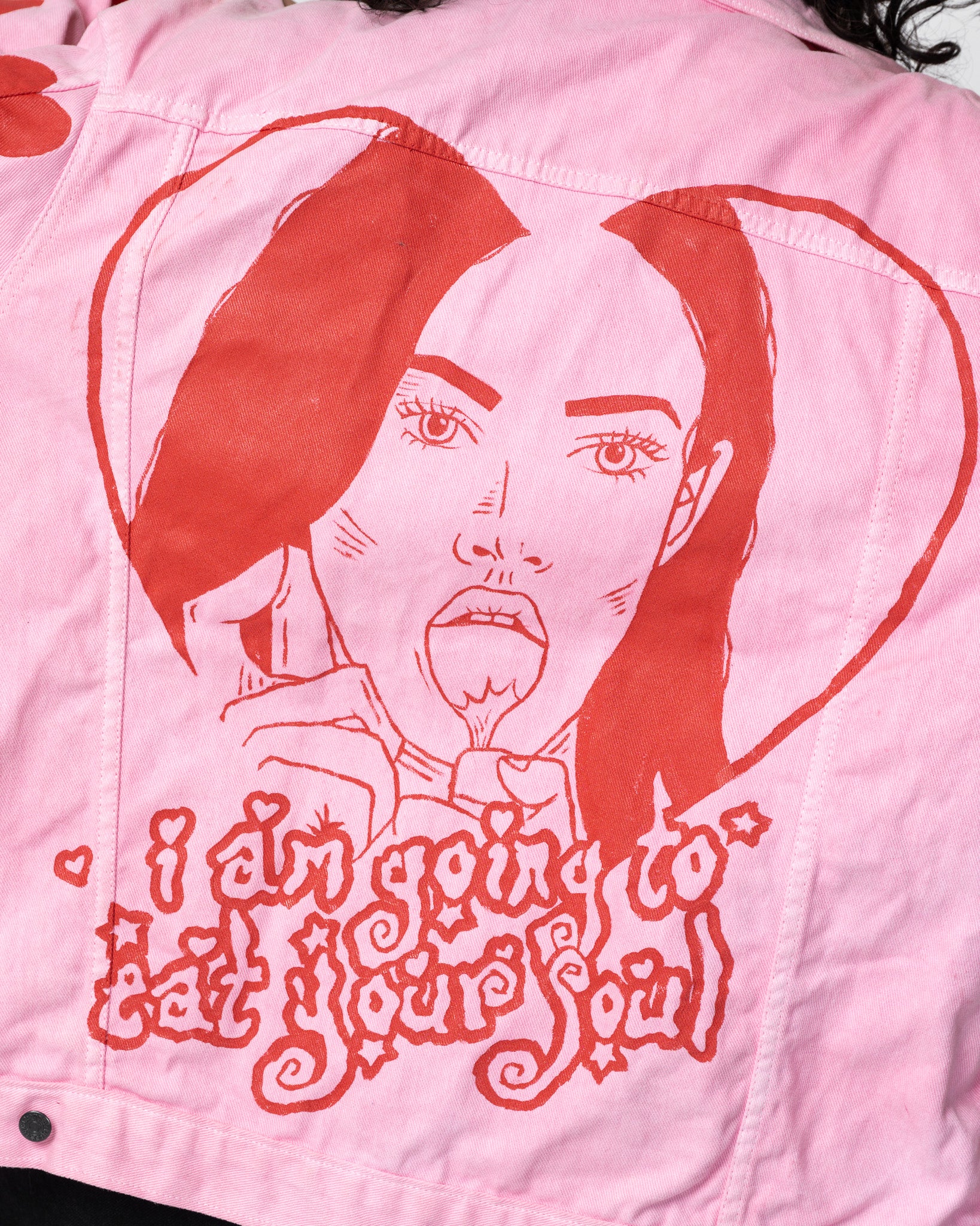 handpainted jacket inspired by Jennifer’s Body. SAMPLE SIZE: XL