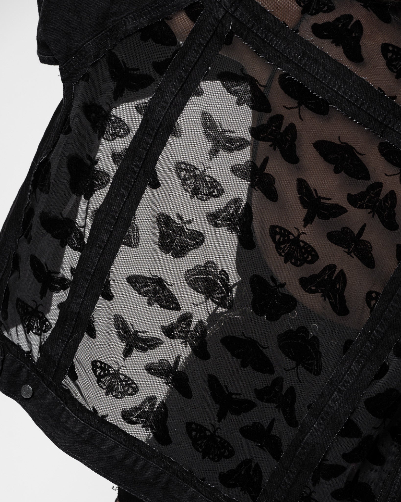 Black velvet moths. Black mesh. Blue or Black Denim.