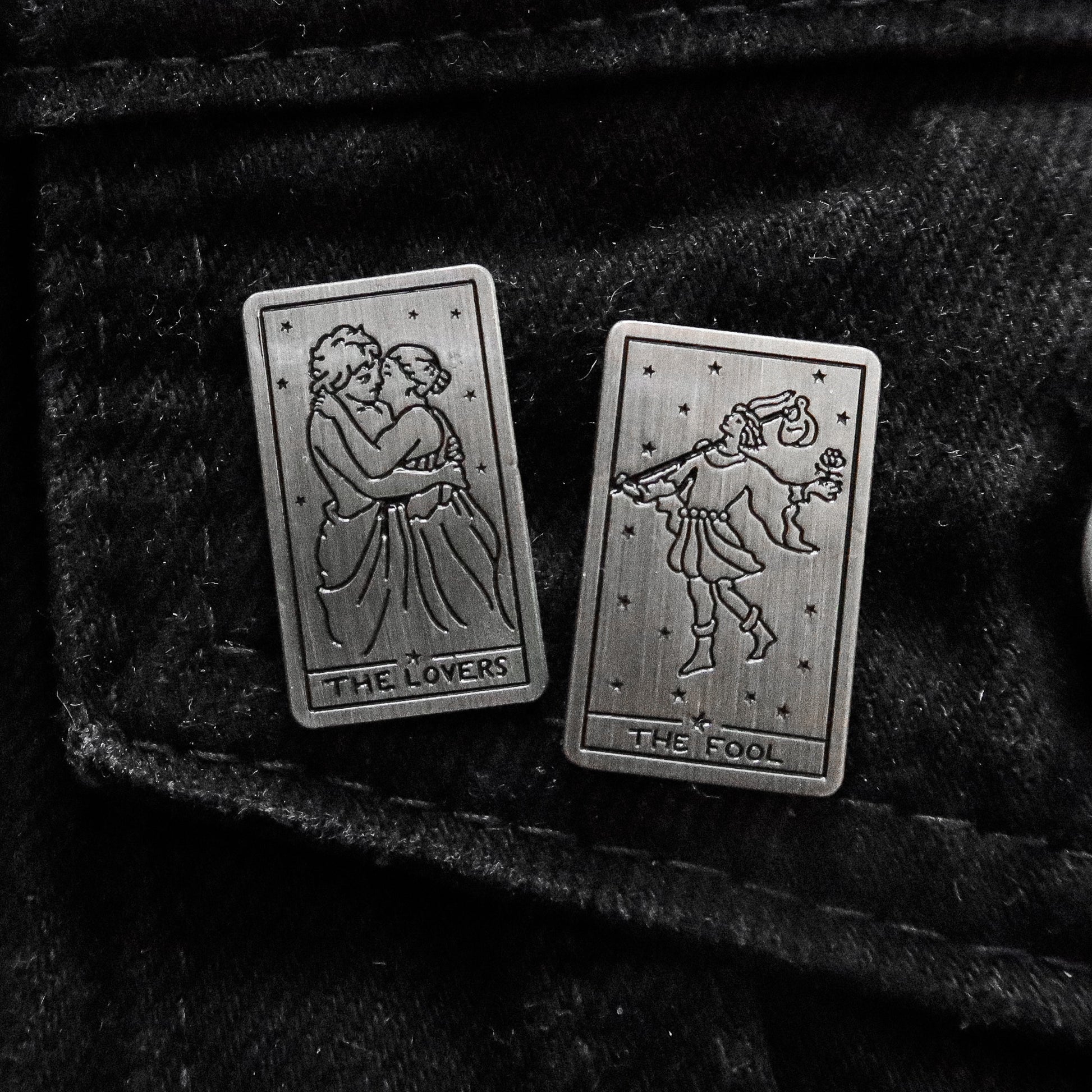 TWO .5" ENAMEL PINS. Metal Clasp. Lovers & The Fool.